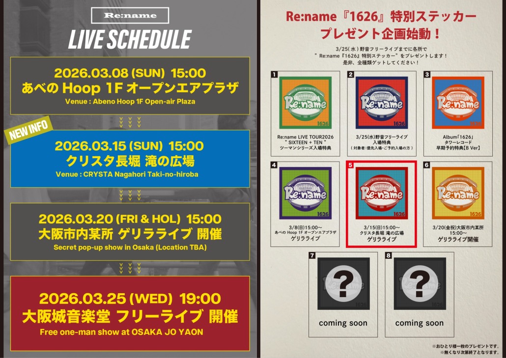 3/25(水)大阪城音楽堂フリーライブに向けて行うゲリラライブの開催場所を1箇所発表!