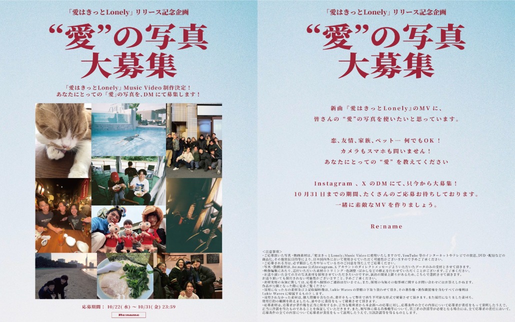 【解禁】New Single『愛はきっとLonely』のMusic Video制作決定!「愛」がテーマの写真を大募集!