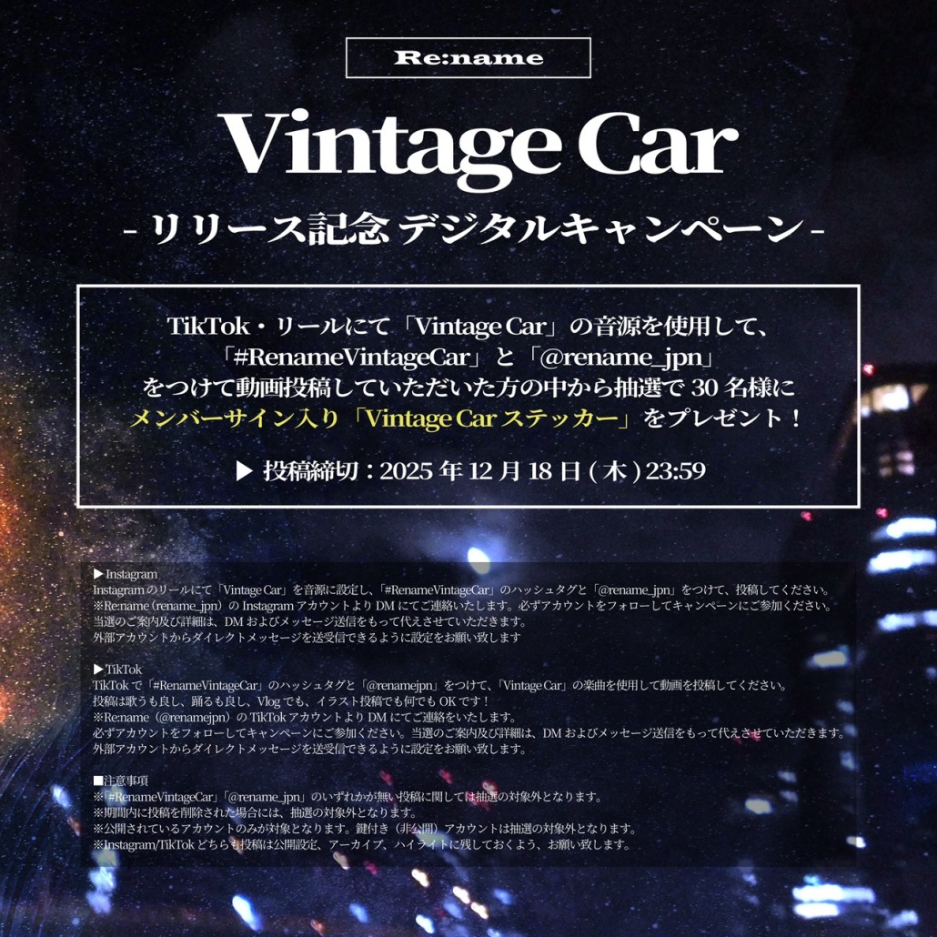 ※「#RenameVintageCar」「@rename_jpn」「@renamejpn」のいずれかが無い投稿に関しては抽選の対象外となります。